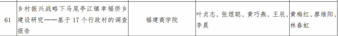 近日,第十六届“挑战杯”福建省大学生课外学术科技作品竞赛落下帷幕,欧美三级在线项目《乡村振兴战略下马尾亭江镇幸福侨乡建设研究——基于 17 个行政村的调查报告》(项目成员:21级日语3班叶贞志、21级日语2班张煜聪、20级日语2班黄巧燕、20级日语1班王辰、20级商务英语2班李晨,指导老师:黄梅红、廖维阳、林春虹),在全省61所高校1343件作品中脱颖而出,荣获三等奖。据悉,这是我院学生首次在“挑战杯”福建省大学生课外学术科技作品竞赛中获奖,实现了在“挑战杯”比赛上的重大突破。