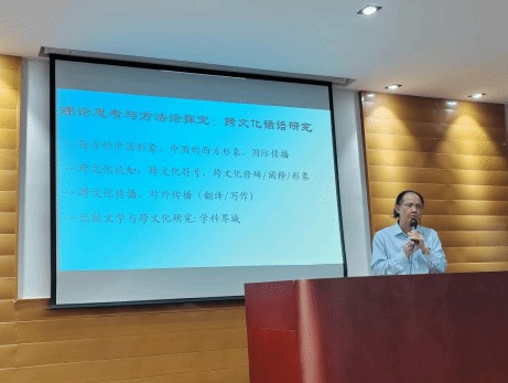 图1-1钟晓文教授开展“国际传播语篇建构探究:跨文化认知框架转换与概念整合”讲座