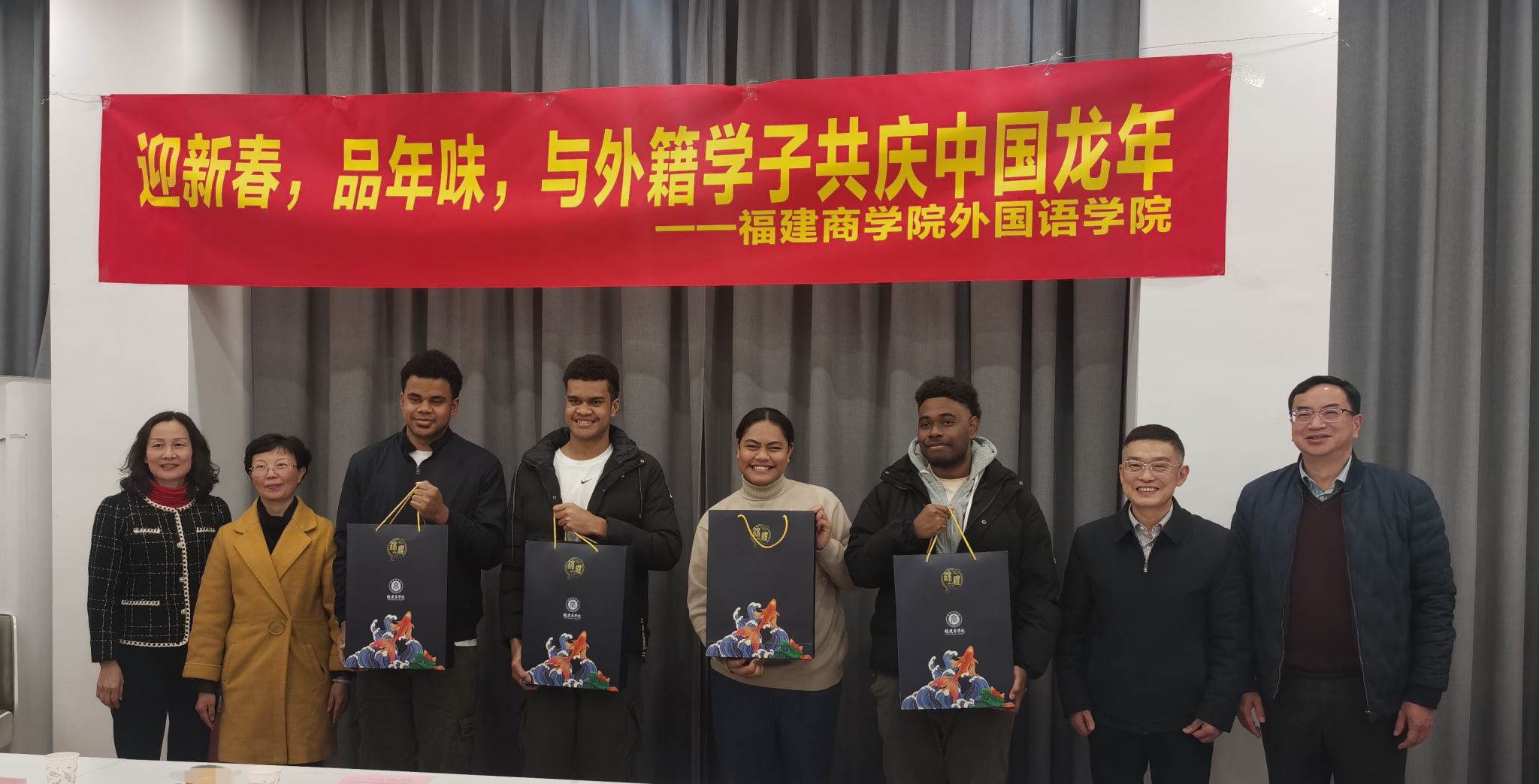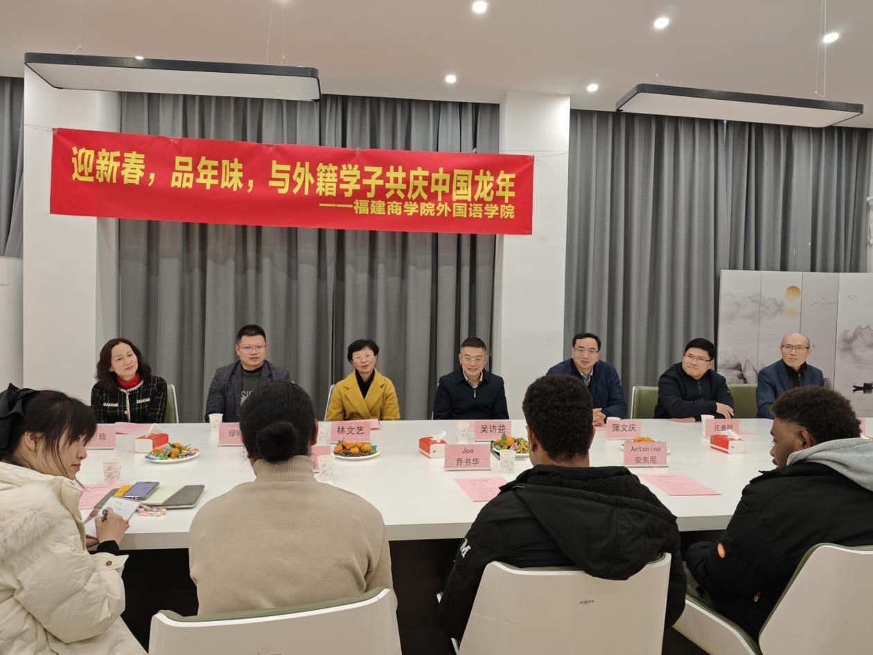 2月7日下午,欧美三级在线举办“迎新春,品年味,共庆中国龙年”留学生新春座谈会。校党委书记吴访益、校党委副书记蒲文庆、副校长林文艺,教务处、学工部、欧美三级在线有关负责人以及留学生代表欢聚一堂,喜迎新春。