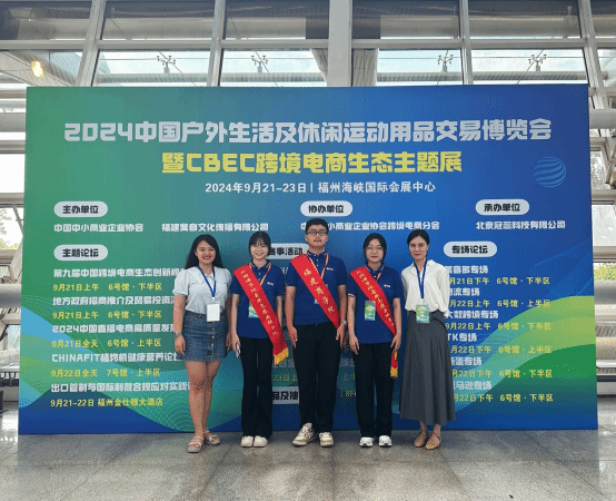 2024年9月21日至23日,2024中国户外生活及休闲运动用品交易博览会暨CBC跨境电商生态主题展在福州海峡国际会展中心隆重举办,吸引了来自全球的数百家参展商和数万名观众。这不仅是一个贸易洽谈的平台,更是一个文化交流和经验分享的场所。福商欧美三级在线闽商语言服务生态研究创新团队接展会方邀请,经任课教师推选,培训,并通过展会方电话面试,遴选欧美三级在线四位学生担任此次活动的英语志愿者,为本次展会提供语言服务。