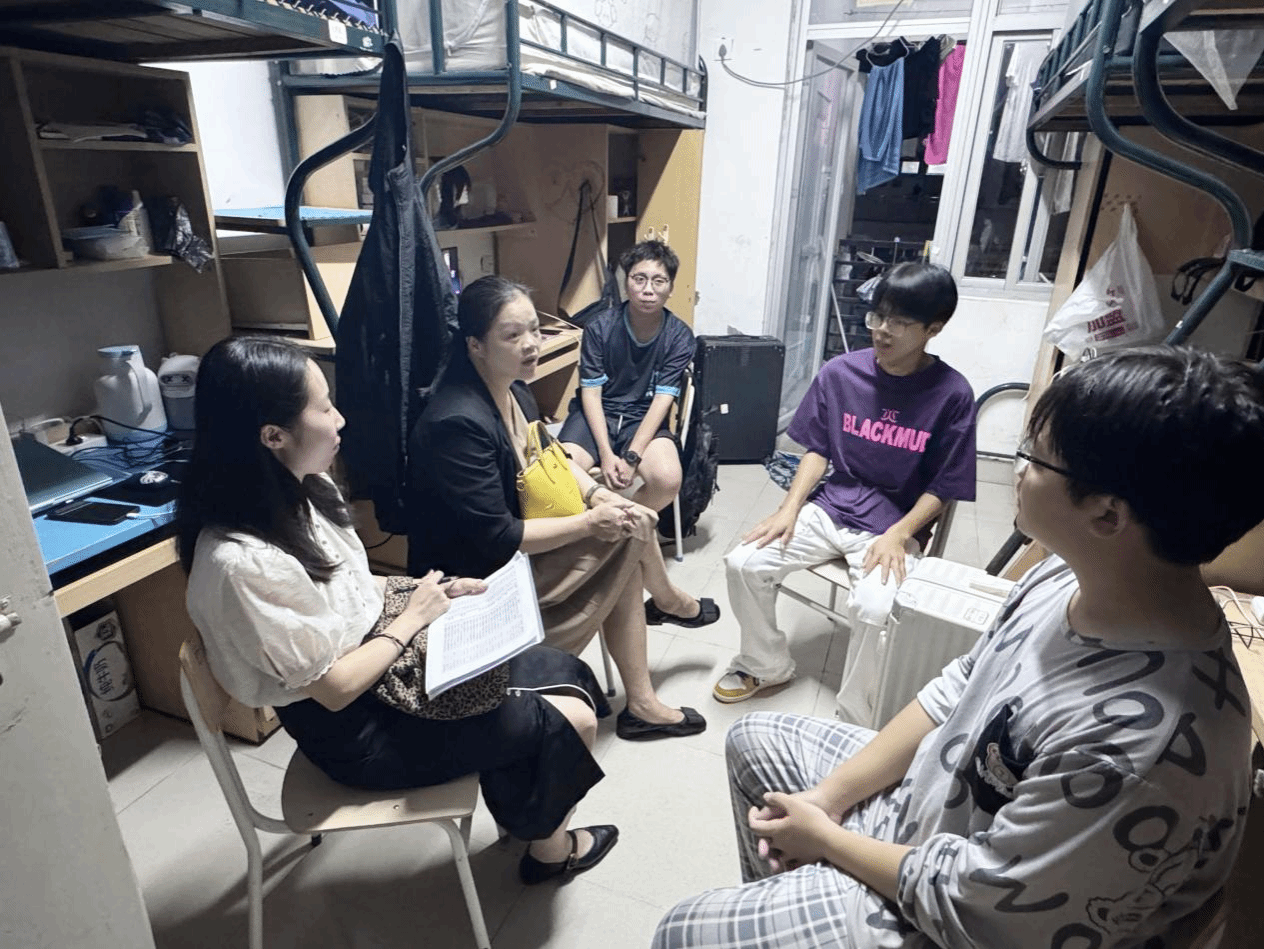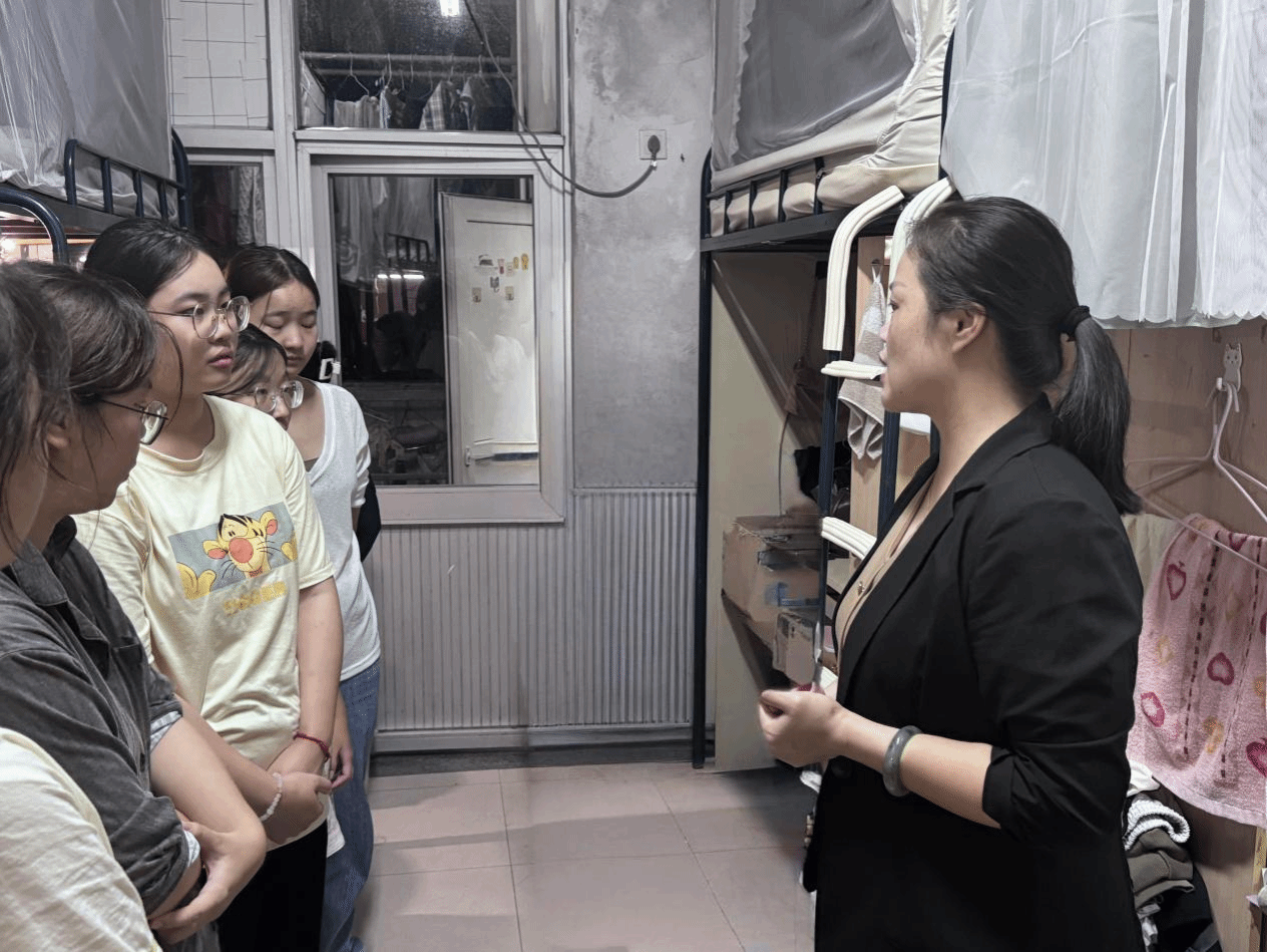 走访过程中,大家仔细询问新生入学以来的适应情况,耐心解答同学们的疑问,鼓励大家积极融入新环境,勤奋学习。杨爱娥老师特别关注省外同学对饮食和气候的适应问题,她说:“学校是每位同学的家,学院更会全力做好服务工作,为大家解决实际困难。”此外,老师们还对新生宿舍规范整理和安全用电等进行检查和指导,提醒同学们遵守宿舍管理规定,养成良好的生活习惯,同时要防盗、防诈骗,共创安全和谐的社区环境。