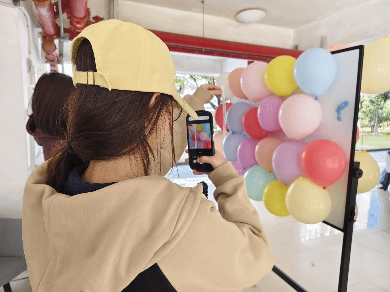 在盲盒墙前,同学们纷纷驻足,在便签纸上写下暖心寄语,并随机放入气球内,制作成“闪光盲盒”。同学们通过现场随机戳破气球盲盒,解锁暖心语录,用文字的温度治愈心灵。“不必追赶太阳,你本身就在发光”“你的存在,已经是100分的奇迹”...在“扎”破烦恼的同时,里面质朴而真挚的寄语更让同学们“爆”改坏心情。活动现场的同学表示:“在对学习感到压力烦躁的时候,收到暖心小纸条后,感觉自己的内心暖暖的。”戳破气球的清脆声响,手写语录的淡淡墨香,朋友圈刷屏的暖心话题不仅承载着同学们对自我价值的坚定肯定,更成为了这个春日里最温暖的成长纪念碑。