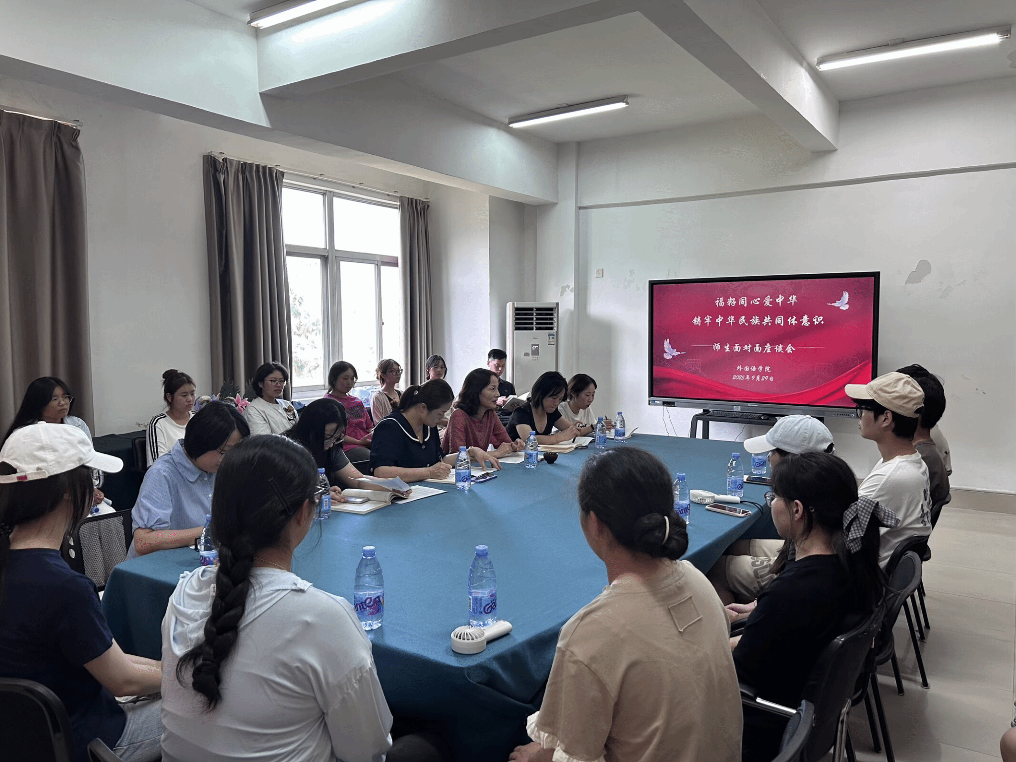 为铸牢中华民族共同体意识,凝聚民族团结奋进力量,近日,欧美三级在线召开“福籽同心爱中华”师生座谈会。学院院长池玫、党委副书记杨爱娥、全体辅导员与少数民族学生代表面对面交谈,以心交心共话成长。