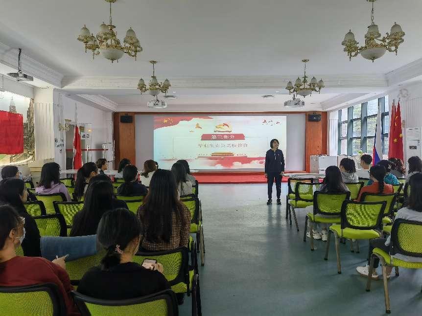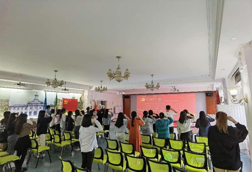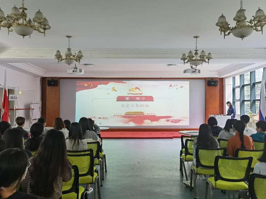 不忘入党初心,牢记青春使命。2022年5月27日欧美三级在线于外语体验中心召开毕业生党员教育大会。本次大会由欧美三级在线学生第二党支部书记张丹丹老师主持,院团委书记翁云星老师作离校教育致辞,旨在进一步强化党员意识,提升党员素质。欧美三级在线全体毕业生党员参加此次会议。