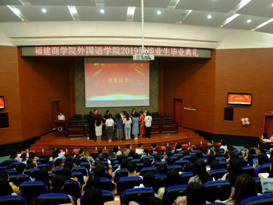 随后,外国语学院党委李珍书记宣读2019届优秀毕业生表彰决定,校党委吴访益副书记和欧美三级在线老师们分别为2019届优秀毕业生颁发获奖证书、为2019届毕业生颁发毕业证书。