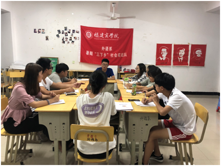 7月14日,福建商学院外语系实践小队的成员在系学生活动办公室举行筹备会。通过筹备会,让大家充分了解本次实践内容、所需物资以及各自负责的工作。