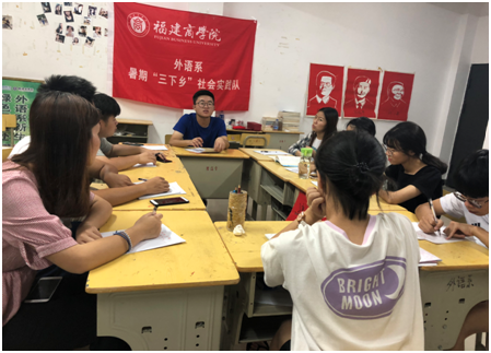 为深入学习宣传贯彻党的十九大精神,福建商学院外语系以建党97周年为契机,进行了“扬十九大奋进之心,开福商风气之先”暑期“三下乡”社会实践活动。在本次实践期间,外语系队伍分别在福建省福州市平潭县、连江县东山村、闽侯县光明村,三个地方进行环保宣传、政策宣传、爱心支教等系列实地下乡活动。