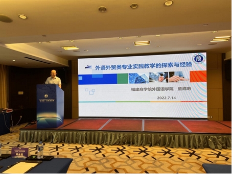 7月12-16日,2022年全国高校外语外贸类专业“双师型”教师培训班在厦门举行,我校欧美三级在线童成寿老师受中语智汇科技(厦门)有限公司的邀请,在培训班上作题为“外语外贸类专业实践教学的探索与经验”的主旨发言。