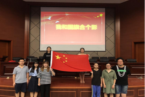 “影”,下午全体党员一同到学术报告厅,在《我和我的祖国》歌声中和国旗合影,迎接国庆到来,表达对新中国成立70周年的美好祝愿。
