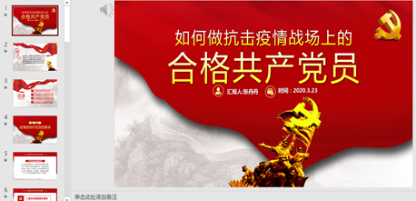 为深入学习贯彻习近平总书记关于防控新型冠状病毒感染的肺炎疫情的重要指示精神,充分发挥基层党组织战斗堡垒作用和党员先锋模范作用,3月23日,欧美三级在线学生第二支部采用线上“学习+讨论”的方式,组织党员开展“如何做抗击疫情战场上的合格共产党员”线上主题党日活动,活动由党支部书记张丹丹主持,支部全体党员参加。