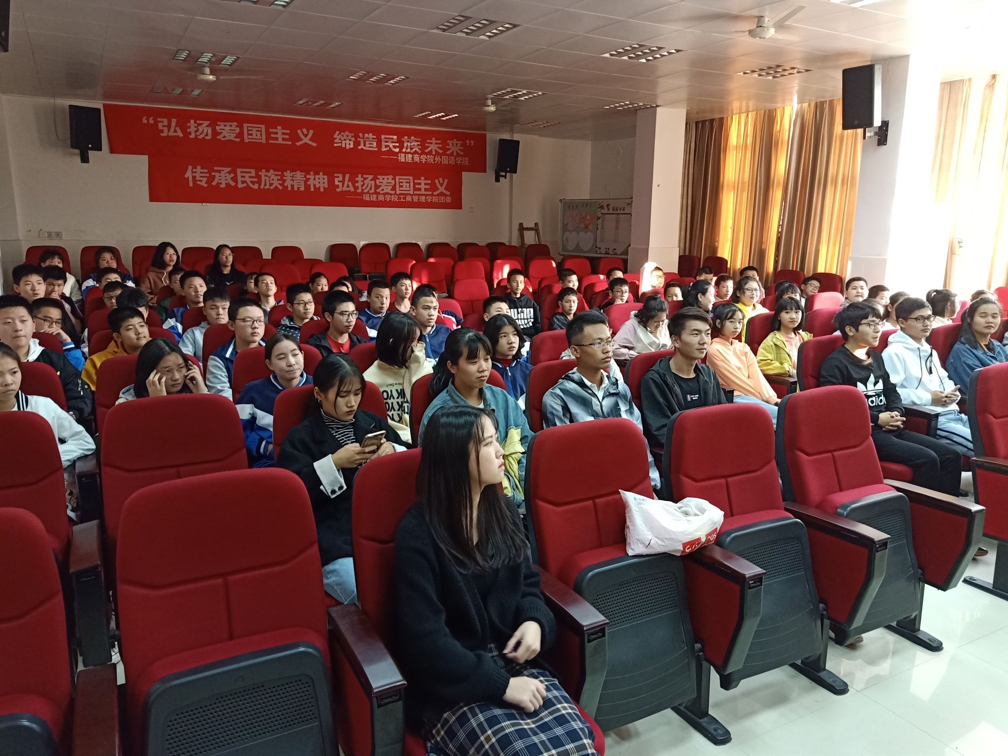 为进一步弘扬社会主义核心价值观,激发学生爱国热情,2019年11月19日,欧美三级在线前往马尾区闽安中学开展“弘扬爱国主义,缔造民族未来”爱国主义教育进校园活动。本次活动面向学院全体学生。