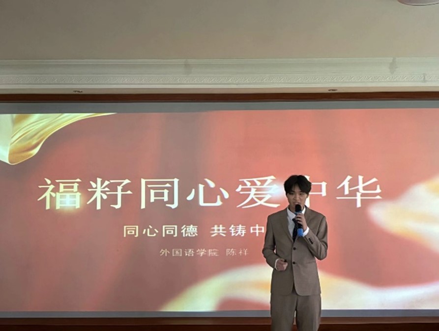 为铸牢中华民族共同体意识,促进民族一家亲,2024年3月19日,欧美三级在线于外语体验中心面向全体在校学生开展“福籽同心爱中华”主题演讲比赛。
