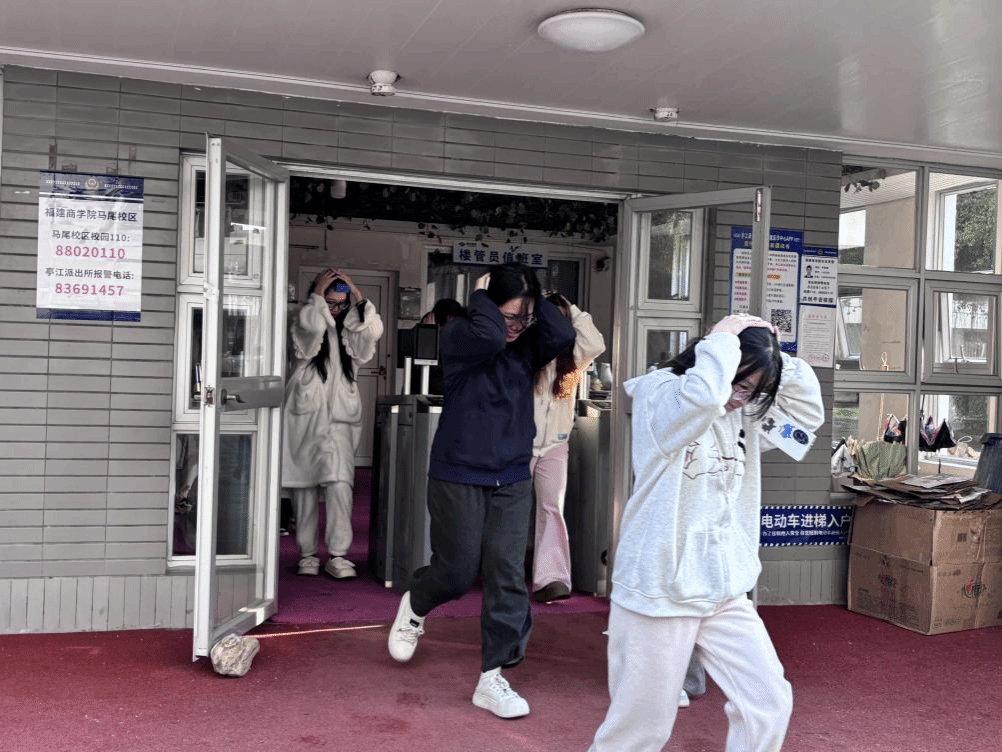随着急促的警报声响起,演练正式开始。同学们迅速反应,用书本或枕头护住头部,弯腰低姿,躲在桌下或墙角等安全地带。随后在老师以及工作人员的指挥下,遵循“分区域、靠右侧、不推搡”的原则,按照预定的疏散路线,快速有序地撤离宿舍,前往安全地带集合。整个撤离过程紧张又有序,同学们均在规定时间内安全撤离到了指定地点,充分展现了同学们良好的应急素养。