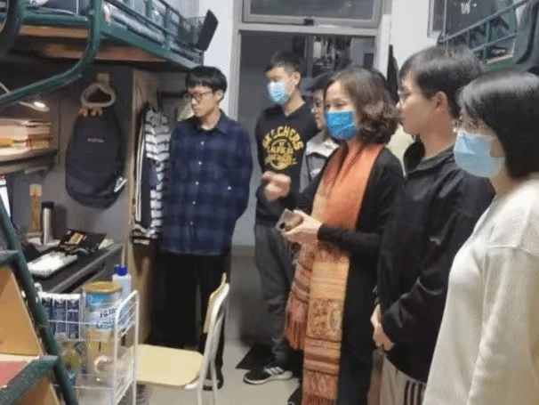 走访过程中,老师们进一步了解了同学们在学习、生活中的困难,叮嘱同学们积极配合学校疫情防控工作,主动进行核酸检测,落实防控措施;注意宿舍卫生,经常通风换气,减少病菌传播;杜绝使用各类违规电器,拒绝校外外卖,减少与外界的接触。同时对同学们疫情期间的线上学习生活提出了一系列的建议,希望同学们在疫情封校期间保证身心健康,保持积极向上的状态,认真学习。老师一句句亲切的问候,化解了同学们紧张的情绪,寝室里洋溢着师生间的浓浓情意。